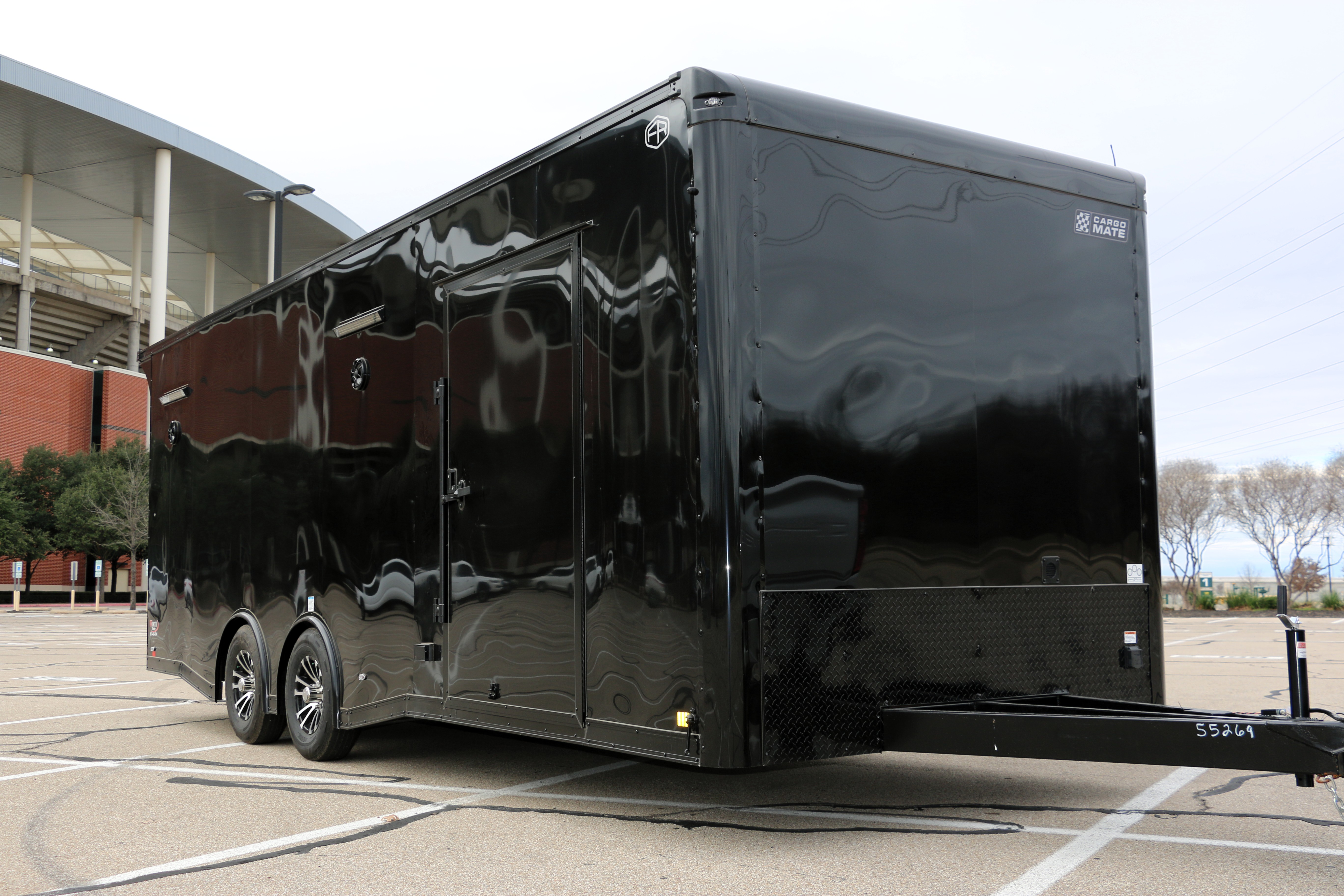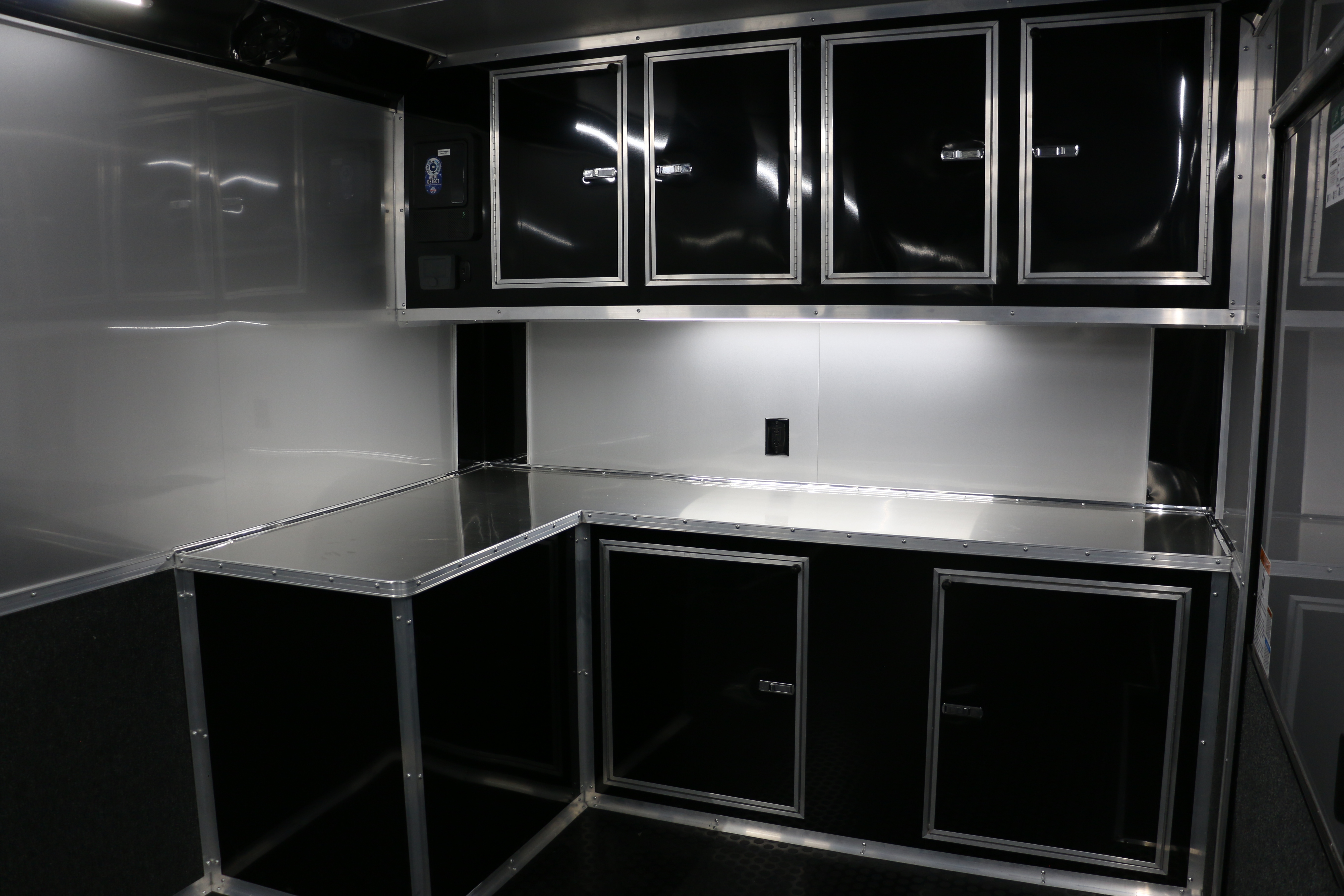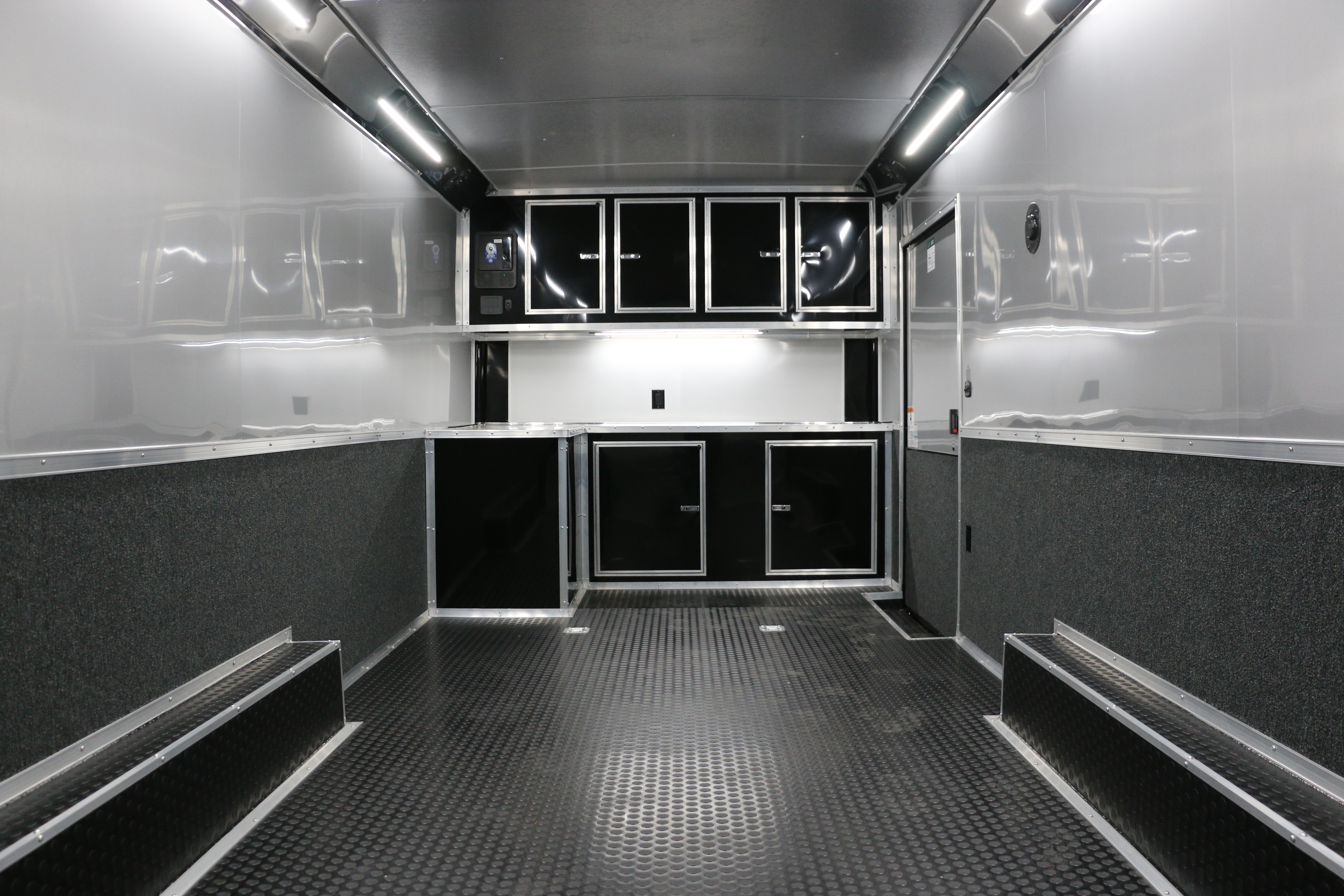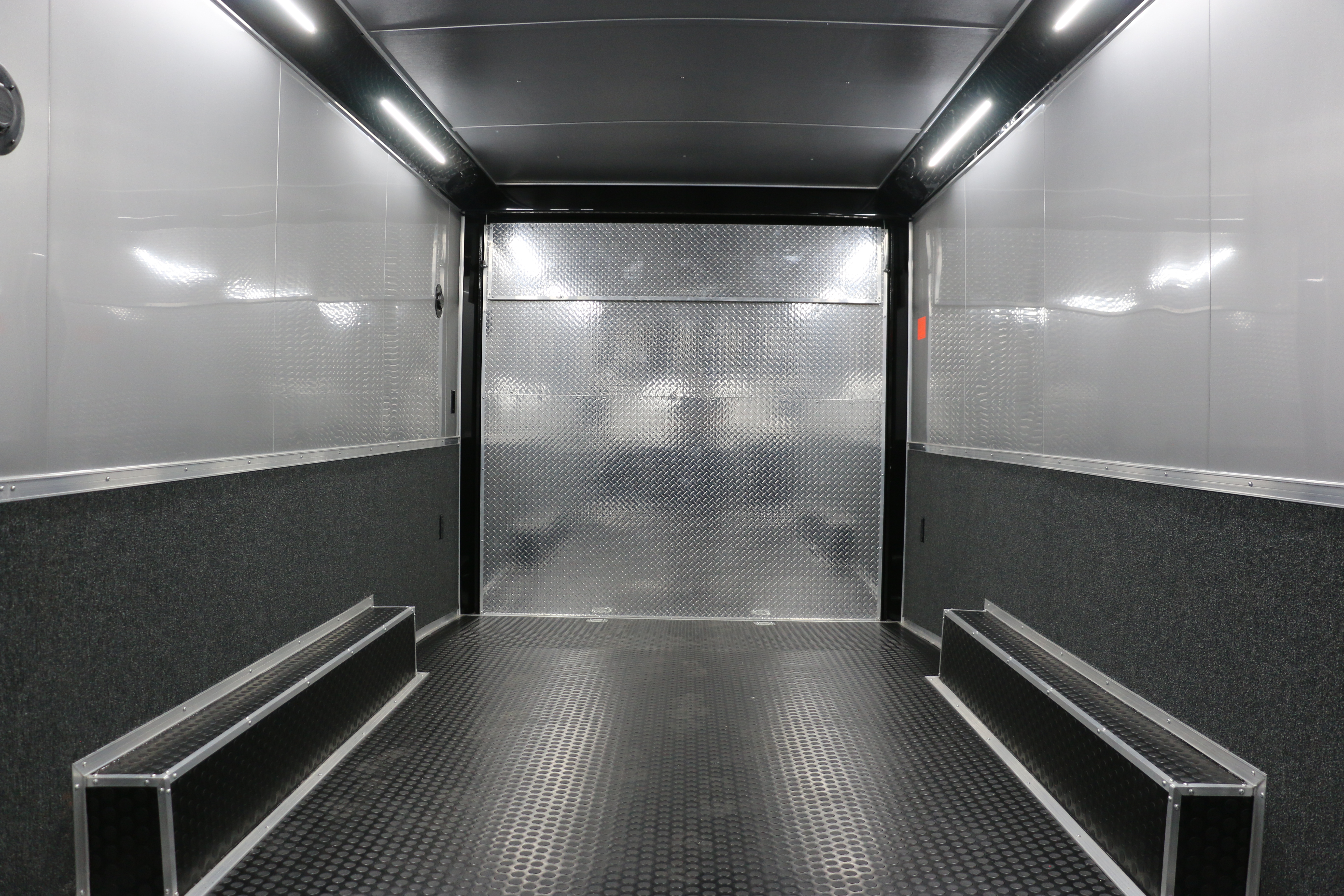 Carpet and aluminum skin on the walls and side door