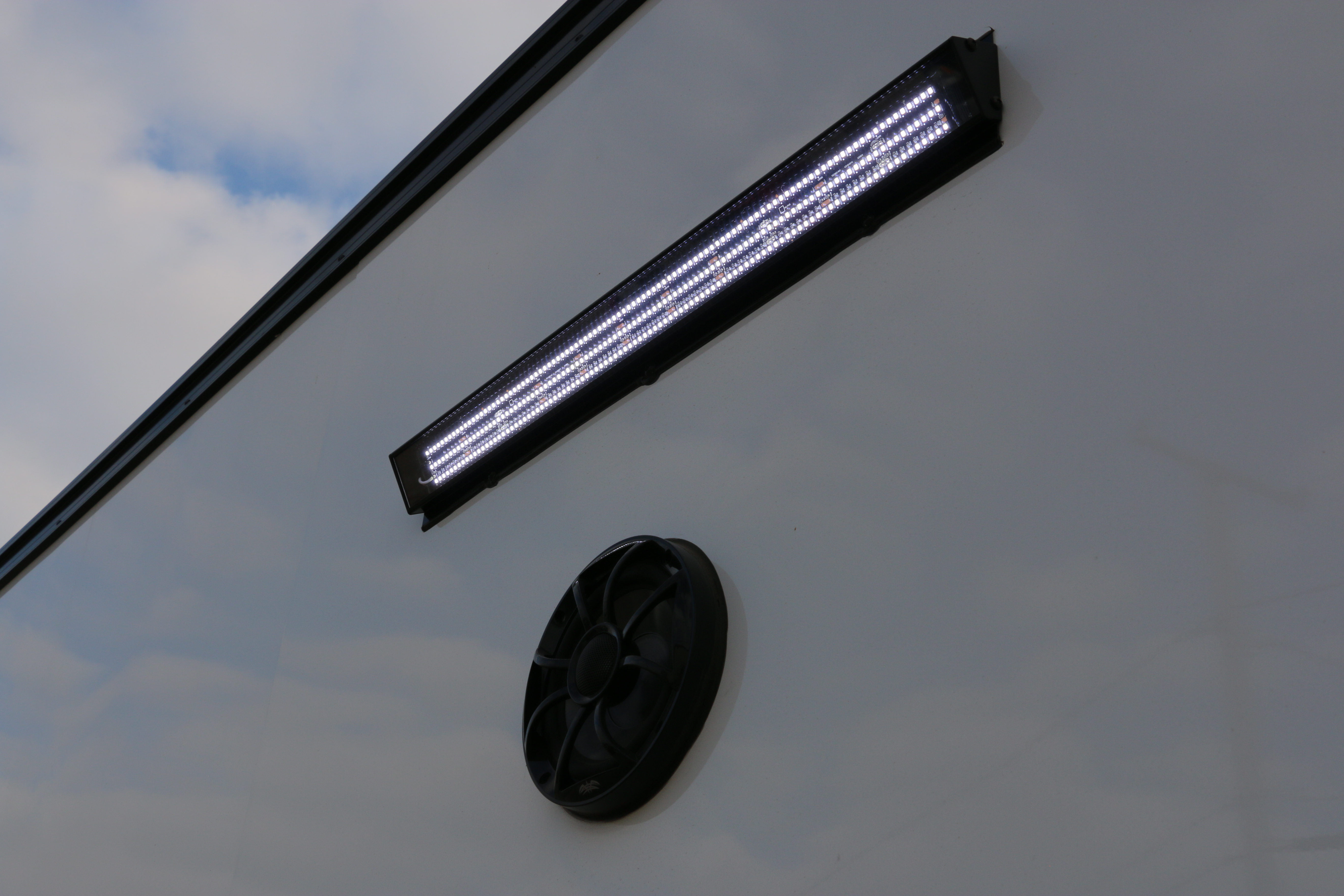 Loading wing with light bars and speakers